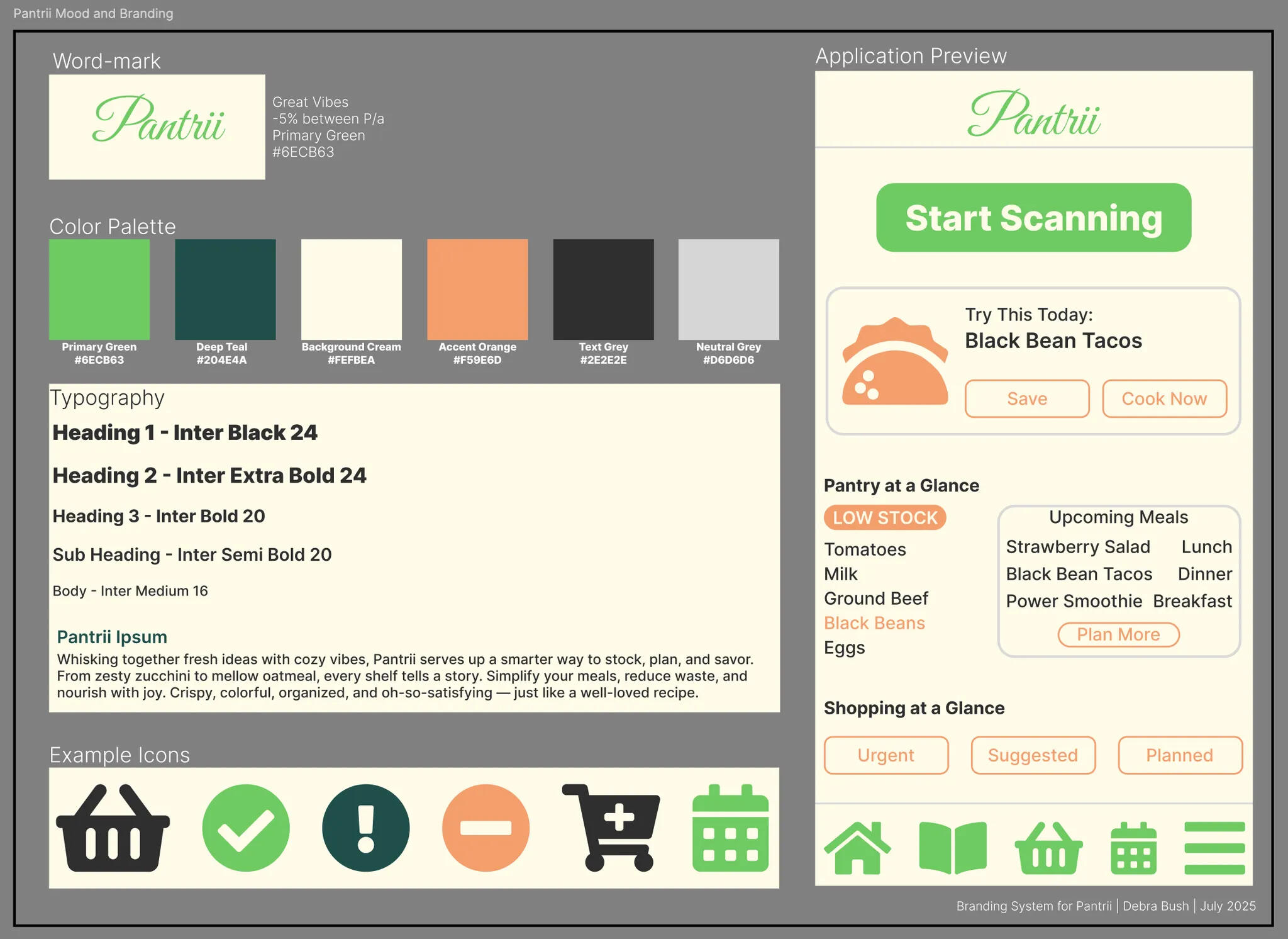 • Mapped user flows for scanning, inventory management, and recipe-triggered planning