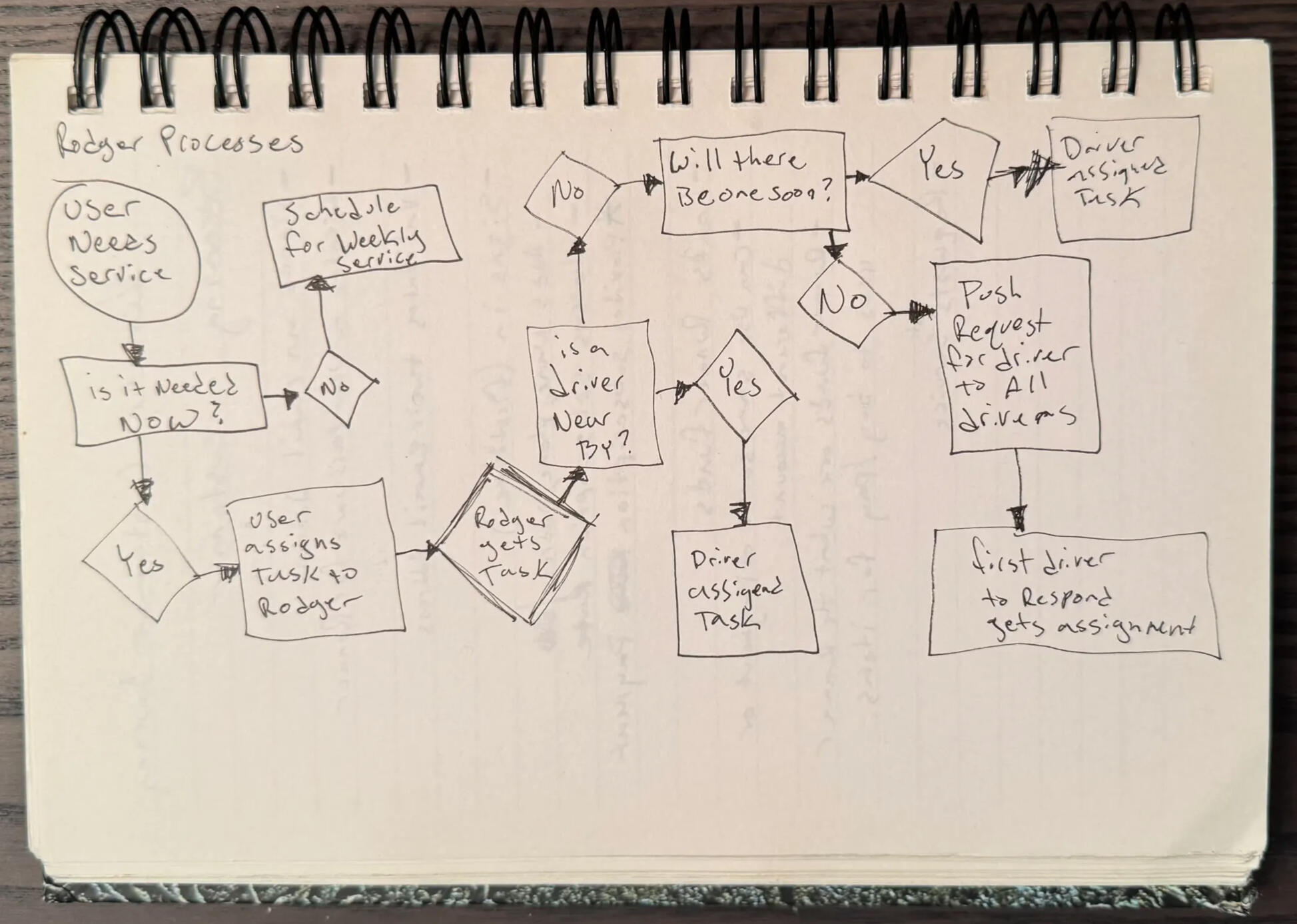 • Early flowcharts for driver notifications and task resolution routing